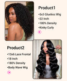 2 Wigs $159 For 22" 5x5 Wear Go Kinky Curly Lace Wig And 13x6 Lace Frontal Body Wave Human Hair Wig